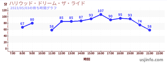 • ハリウッド・ドリーム・ザ・ライド$B$N(B2023年05月03日の待ち時間