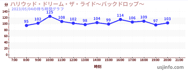• ハリウッド・ドリーム・ザ・ライド〜バックドロップ〜$B$N(B2023年05月04日の待ち時間