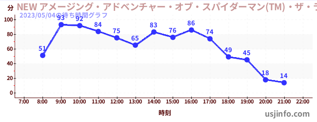 • NEW アメージング・アドベンチャー・オブ・スパイダーマン(TM)・ザ・ライド 4K3D$B$N(B2023年05月04日の待ち時間