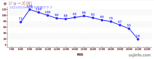 • ジョーズ(R)$B$N(B2023年05月04日の待ち時間