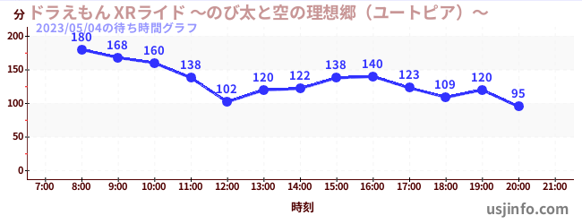 • ドラえもん XRライド ~のび太と空の理想郷(ユートピア)~$B$N(B2023年05月04日の待ち時間