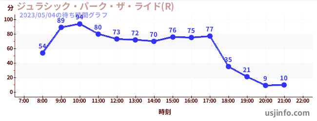 • ジュラシック・パーク・ザ・ライド(R)$B$N(B2023年05月04日の待ち時間