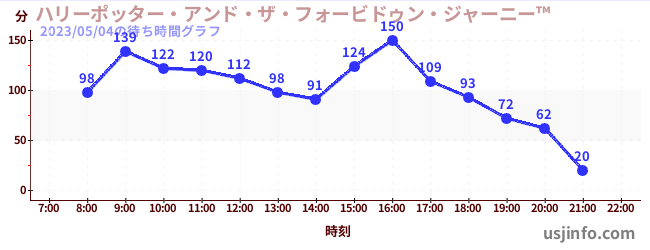 • ハリーポッター・アンド・ザ・フォービドゥン・ジャーニー™$B$N(B2023年05月04日の待ち時間