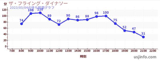 • ザ・フライング・ダイナソー$B$N(B2023年05月04日の待ち時間