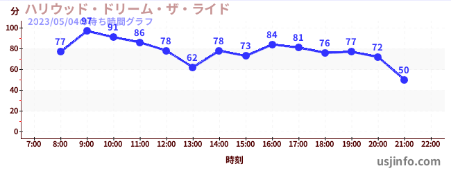 • ハリウッド・ドリーム・ザ・ライド$B$N(B2023年05月04日の待ち時間