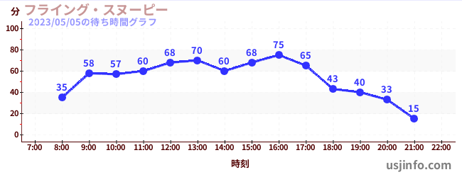 • フライング・スヌーピー$B$N(B2023年05月05日の待ち時間