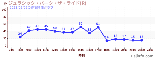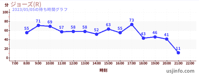 • ジョーズ(R)$B$N(B2023年05月05日の待ち時間