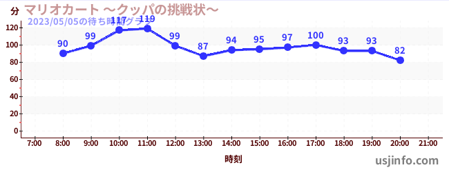 • マリオカート ~クッパの挑戦状~$B$N(B2023年05月05日の待ち時間