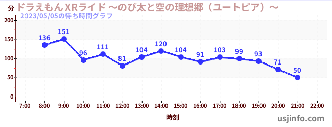 • ドラえもん XRライド ~のび太と空の理想郷(ユートピア)~$B$N(B2023年05月05日の待ち時間