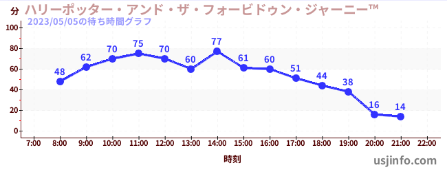 • ハリーポッター・アンド・ザ・フォービドゥン・ジャーニー™$B$N(B2023年05月05日の待ち時間