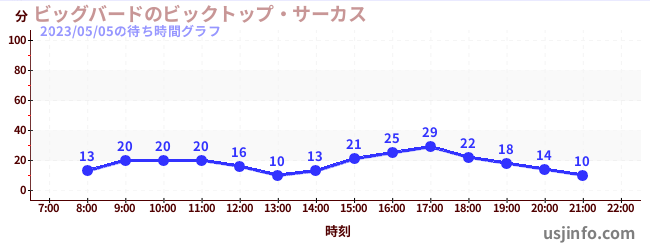 • ビッグバードのビックトップ・サーカス$B$N(B2023年05月05日の待ち時間