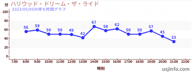 • ハリウッド・ドリーム・ザ・ライド$B$N(B2023年05月05日の待ち時間