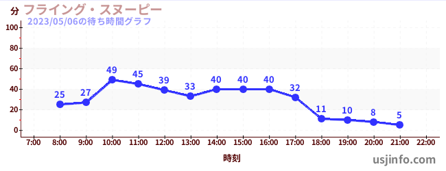 • フライング・スヌーピー$B$N(B2023年05月06日の待ち時間