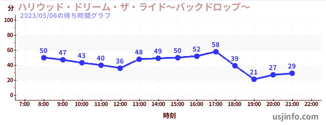• ハリウッド・ドリーム・ザ・ライド〜バックドロップ〜$B$N(B2023年05月06日の待ち時間