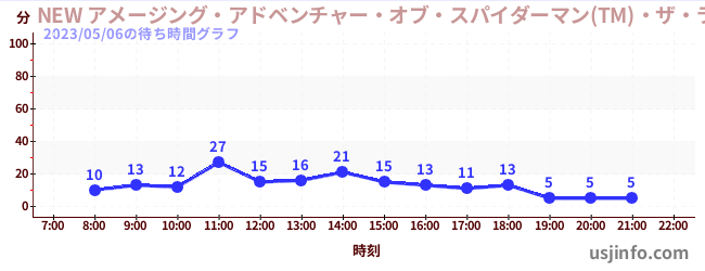 • NEW アメージング・アドベンチャー・オブ・スパイダーマン(TM)・ザ・ライド 4K3D$B$N(B2023年05月06日の待ち時間