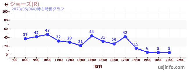 • ジョーズ(R)$B$N(B2023年05月06日の待ち時間