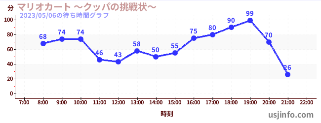 • マリオカート ~クッパの挑戦状~$B$N(B2023年05月06日の待ち時間