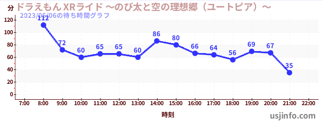 • ドラえもん XRライド ~のび太と空の理想郷(ユートピア)~$B$N(B2023年05月06日の待ち時間