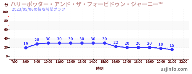 • ハリーポッター・アンド・ザ・フォービドゥン・ジャーニー™$B$N(B2023年05月06日の待ち時間