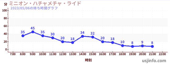 • ミニオン・ハチャメチャ・ライド$B$N(B2023年05月06日の待ち時間