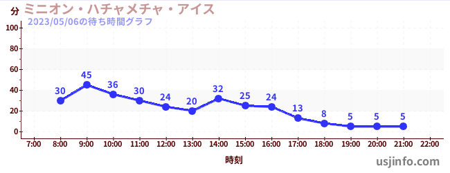 • ミニオン・ハチャメチャ・アイス$B$N(B2023年05月06日の待ち時間