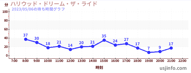 • ハリウッド・ドリーム・ザ・ライド$B$N(B2023年05月06日の待ち時間