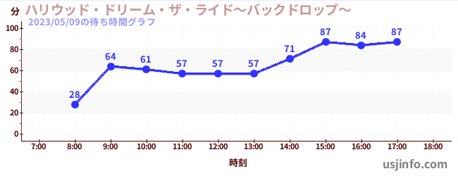 • ハリウッド・ドリーム・ザ・ライド〜バックドロップ〜$B$N(B2023年05月09日の待ち時間