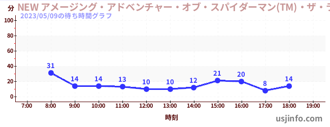 • NEW アメージング・アドベンチャー・オブ・スパイダーマン(TM)・ザ・ライド 4K3D$B$N(B2023年05月09日の待ち時間