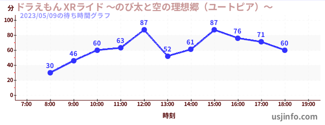 • ドラえもん XRライド ~のび太と空の理想郷(ユートピア)~$B$N(B2023年05月09日の待ち時間