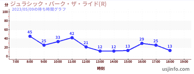 • ジュラシック・パーク・ザ・ライド(R)$B$N(B2023年05月09日の待ち時間