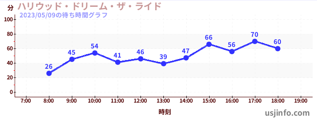 • ハリウッド・ドリーム・ザ・ライド$B$N(B2023年05月09日の待ち時間