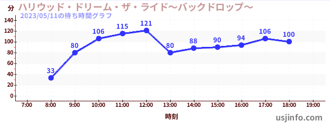 • ハリウッド・ドリーム・ザ・ライド〜バックドロップ〜$B$N(B2023年05月11日の待ち時間