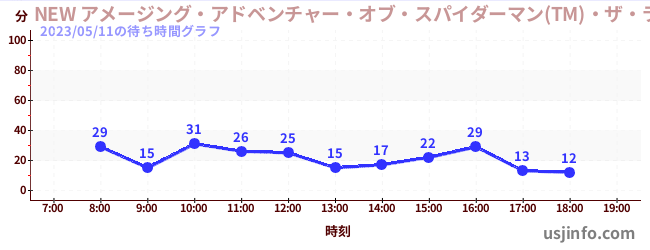 • NEW アメージング・アドベンチャー・オブ・スパイダーマン(TM)・ザ・ライド 4K3D$B$N(B2023年05月11日の待ち時間