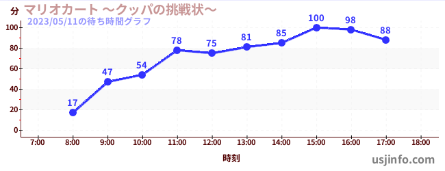 • マリオカート ~クッパの挑戦状~$B$N(B2023年05月11日の待ち時間
