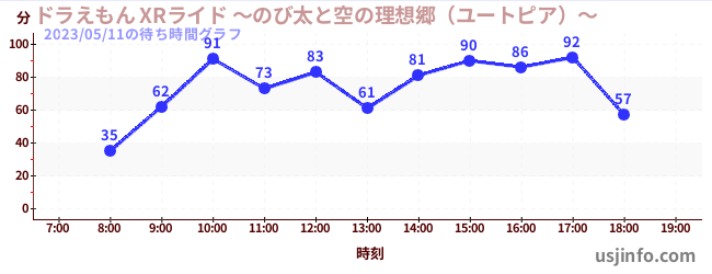 • ドラえもん XRライド ~のび太と空の理想郷(ユートピア)~$B$N(B2023年05月11日の待ち時間