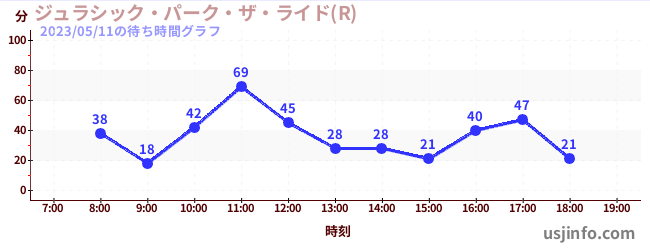 • ジュラシック・パーク・ザ・ライド(R)$B$N(B2023年05月11日の待ち時間