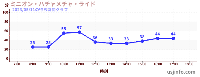 • ミニオン・ハチャメチャ・ライド$B$N(B2023年05月11日の待ち時間