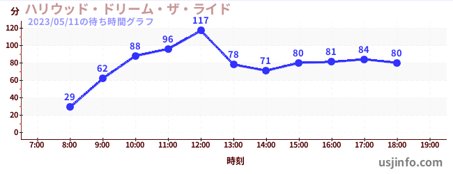 • ハリウッド・ドリーム・ザ・ライド$B$N(B2023年05月11日の待ち時間