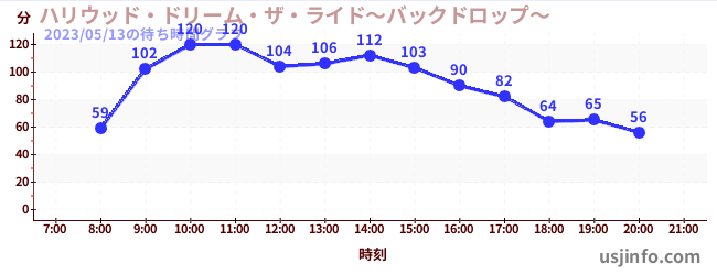 • ハリウッド・ドリーム・ザ・ライド〜バックドロップ〜$B$N(B2023年05月13日の待ち時間