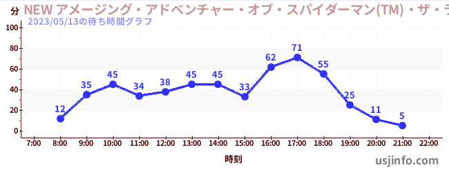 • NEW アメージング・アドベンチャー・オブ・スパイダーマン(TM)・ザ・ライド 4K3D$B$N(B2023年05月13日の待ち時間