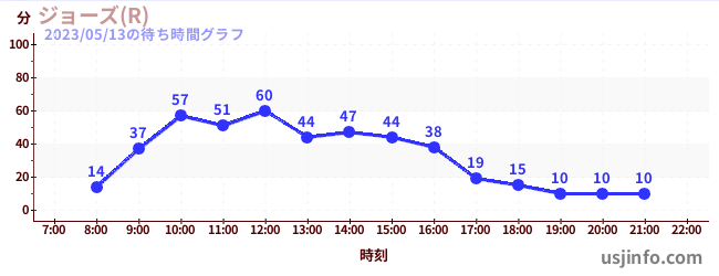 • ジョーズ(R)$B$N(B2023年05月13日の待ち時間