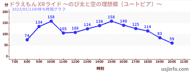 • ドラえもん XRライド ~のび太と空の理想郷(ユートピア)~$B$N(B2023年05月13日の待ち時間