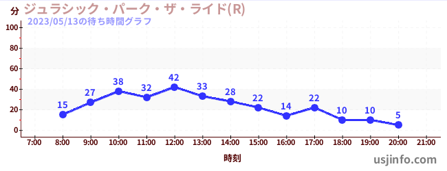 • ジュラシック・パーク・ザ・ライド(R)$B$N(B2023年05月13日の待ち時間