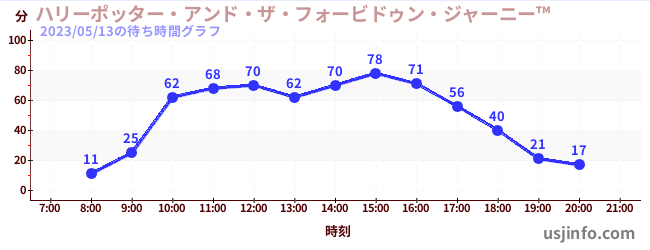 • ハリーポッター・アンド・ザ・フォービドゥン・ジャーニー™$B$N(B2023年05月13日の待ち時間