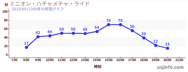 • ミニオン・ハチャメチャ・ライド$B$N(B2023年05月13日の待ち時間