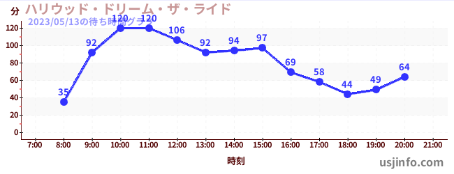 • ハリウッド・ドリーム・ザ・ライド$B$N(B2023年05月13日の待ち時間