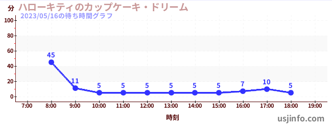 • ハローキティのカップケーキ・ドリーム$B$N(B2023年05月16日の待ち時間