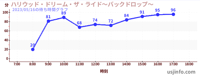 • ハリウッド・ドリーム・ザ・ライド〜バックドロップ〜$B$N(B2023年05月16日の待ち時間
