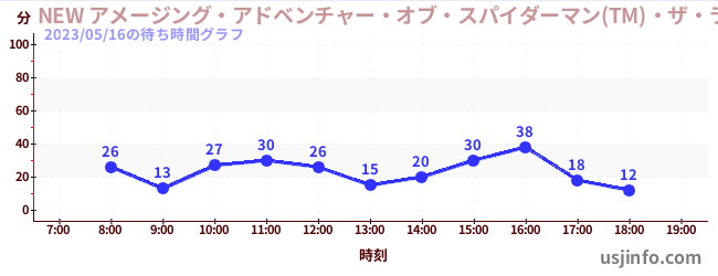 • NEW アメージング・アドベンチャー・オブ・スパイダーマン(TM)・ザ・ライド 4K3D$B$N(B2023年05月16日の待ち時間