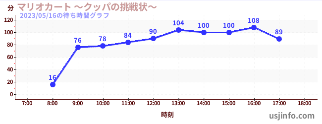 • マリオカート ~クッパの挑戦状~$B$N(B2023年05月16日の待ち時間
